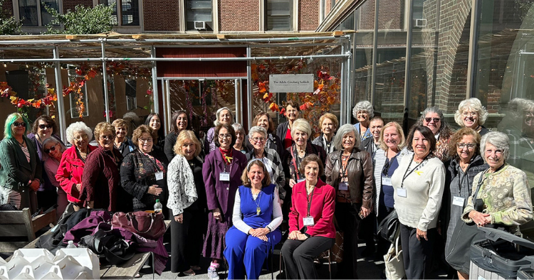 Top two photos: WLCJ Board members and Torah Fund Cabinet gathered in the Adele Ginzberg Women's League Sukkah at JTS.