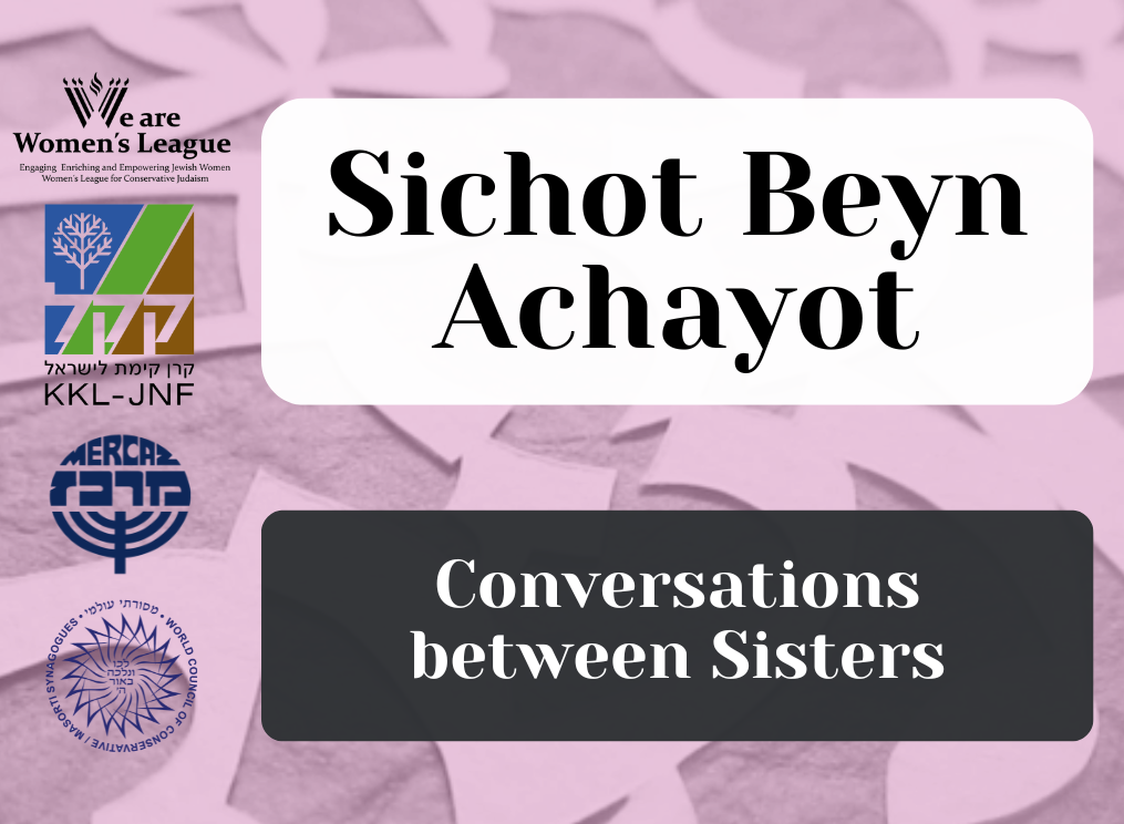 שׂיחוֹת בֵּין אָחַיוֹת, Sichot beyn Achayot means “conversations between sisters.” This program is designed to foster a deeper mutual understanding between the Masorti women in Israel and those in other countries around the globe. It is designed to address the question, “How are we the same, and how are we different?” The theme of this year’s program is: