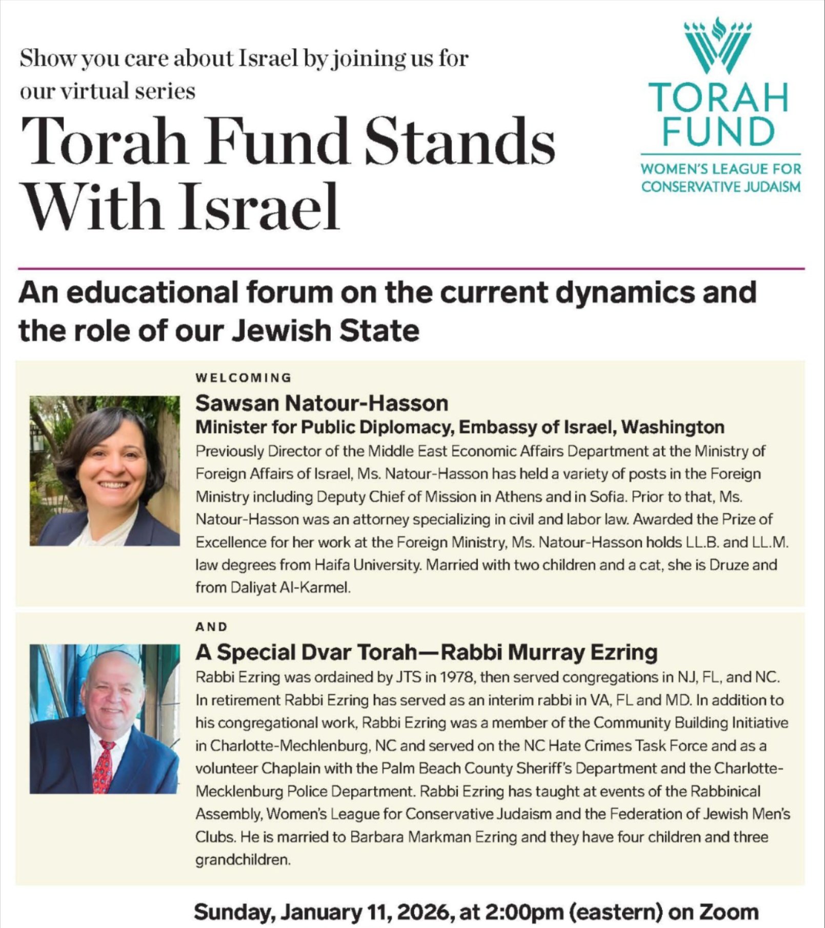 The WWOT, the Weekly Words of Torah, each week through the end of June 2026, will connect to the 2025-2026 / 5786 Torah Fund general campaign, Oseh Shalom – Maker of Peace. To read more Weekly Words of Torah, click here.
